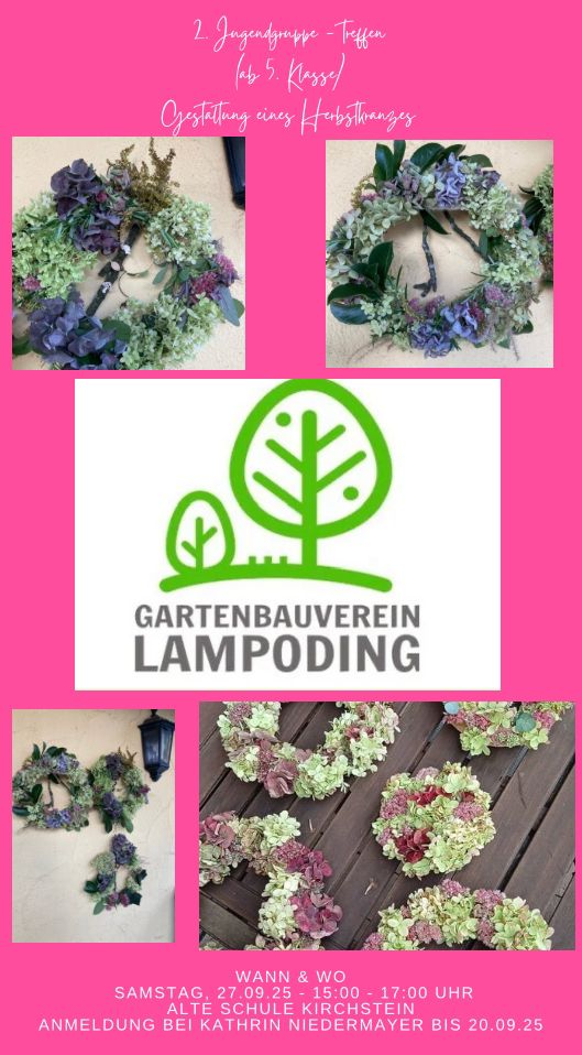 Generell Fragen oder Anmeldung an Angelina Tillmanns, Tel. 08685 77 97 717, vorstand@gartenbauverein-lampoding.de