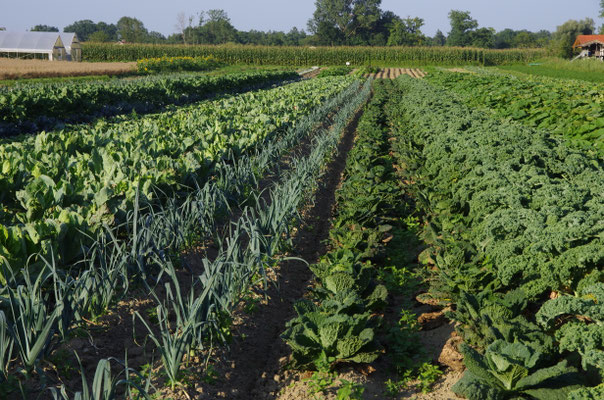 Gemüsesorten nach Saison zur regionalen Vermarktung auf Wochenmärkten, an ortsnahe Betriebe und das Krankenhaus