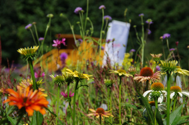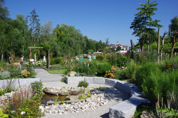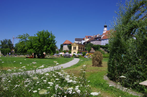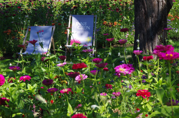 Schee war unser Ausflug und mit 40 Teilnehmern gut gebucht. Bei schönstem Sonnenschein und sommerlichen Temperaturen wurden die verschiedenen Bereiche der Gartenschau, die Altstadt, der Schlosspark und der Uferweg am Inn erkundet. Herrlich waren die bunte Blumenbeete mit Gerberern, Zinnien und unzähligen Sommerblumen oder der Farnweg und viele Nischen anzusehen. Neben Heumandln und einem Weidenzelt gab es auch exotisches wie Ginko- und Pomeranzenbäume und eine Seidenakazie zu entdecken. Kulinarisch bestens versorgt im Gelände und in der Stadt wurden am Nachmittag eher die schattigeren Plätzchen aufgesucht.