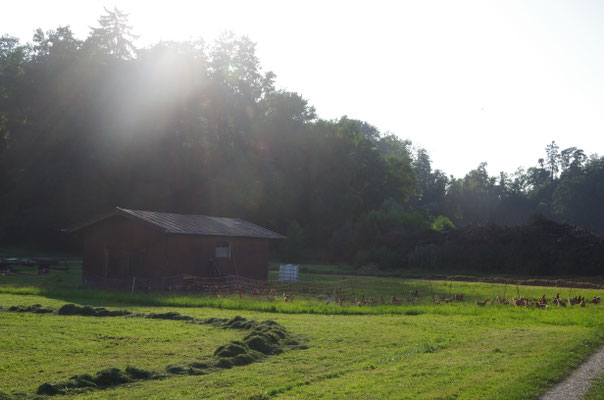 Abrundend hat Markus Hager noch eigene Bienenstöcke und rund 150 Hühner, deren Bruderhähne in einem anderen Betrieb leben. "Und warum meine Hennen länger als der Durchschnitt Eier legen, liegt wohl daran, dass sie im Freiland auf der Wiese leben und einen Ausblick haben, von dem mancher nur träumen kann" schwärmt Markus.
