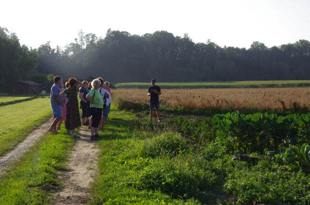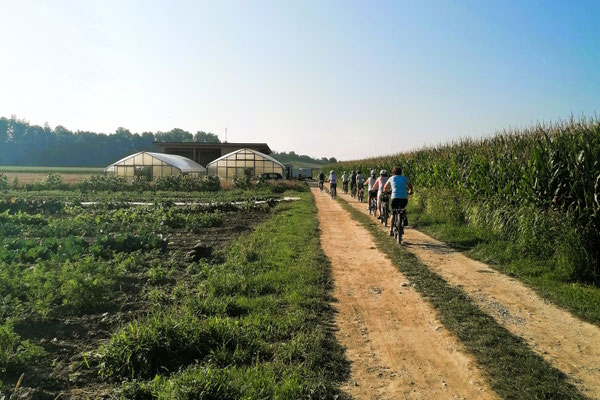 Die meisten der 22 Teilnehmenden radelten bei sommerlichen Temperaturen von Kirchstein nach Obergeisenfelden um beim Bio-Gemüsehof Hager eine Führung zu bekommen.