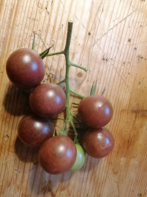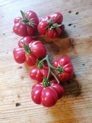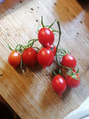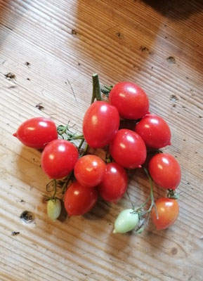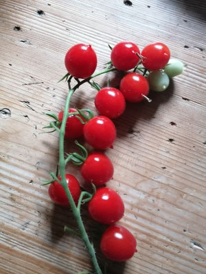 Ab August kann geerntet werden, die fleischigen Ochsenherzen und andere Sorten werden zu Sugos verarbeitet, die kleinen Naschtomaten genascht und generell alle Sorten in Salaten und mit Basilikum und Mozarella als "Caprese" vertilgt.