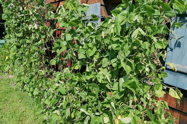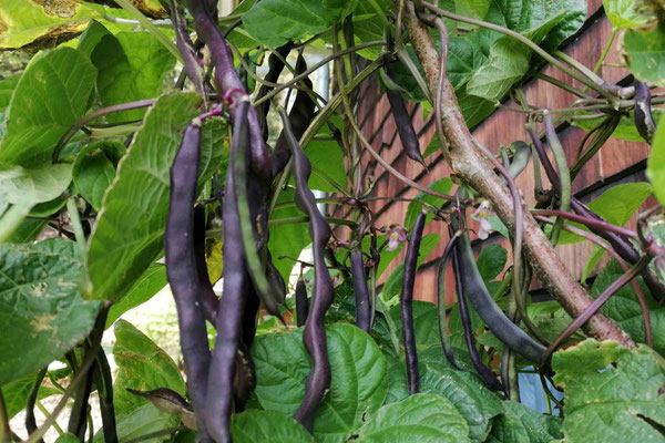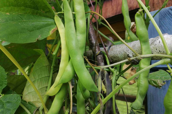 Die nachgesäten Standardbohnen haben sich inzwischen gut entwickelt und es wird geerntet.