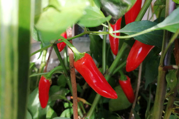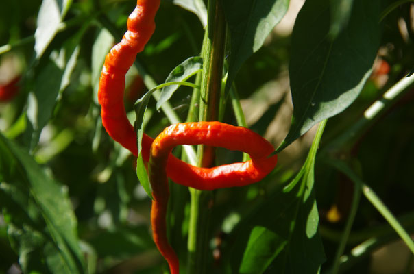 Sorten: Lila Lucy, Thunder Mountain Longhorn und viele unbenannte, auch Habaneros und Jalapenos.