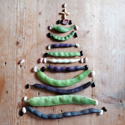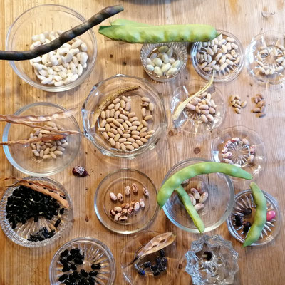 Ausprobiert werden eigene namenlose Bohnen vom letzten Jahr, die kommerzielle Buschbohne Slenderetta, Feuerbohnen und die Sorten Eckendorfer Rotsprenkel, Schwarze Dalmatiner, Sequoia und Thujas Spezial vom ÖBZ sowie Stangenbohnen "Pferdchen" und "Name vergessen" vom Tauschmarkt und Demeter Stangenbohnen Helda, Brunhilde und Neckargold.