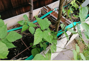 Danach wurde noch 2x nachgesät mit deprimierenden Ergebnis, schade um die Bohnen des ÖBZ, die nachgekauften Standardsorten haben sich dann später bis Ende August gut gemacht und bringen eine gute Ernte ein.