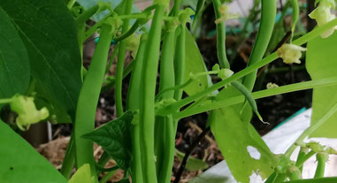 Die nachgesäten Standardbohnen haben sich inzwischen gut entwickelt und es wird geerntet.